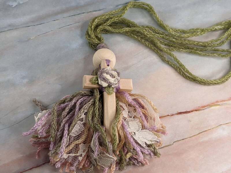 Four Strand Tassel Wood Cross Bookmark