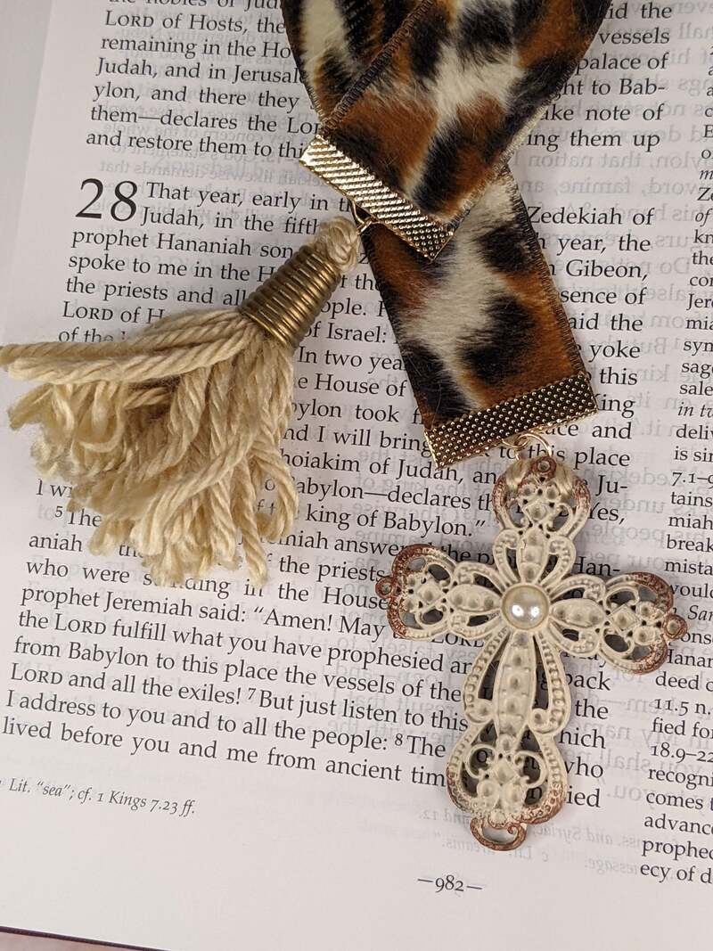 Leopard Print Ribbon Cross Tassel Bookmark