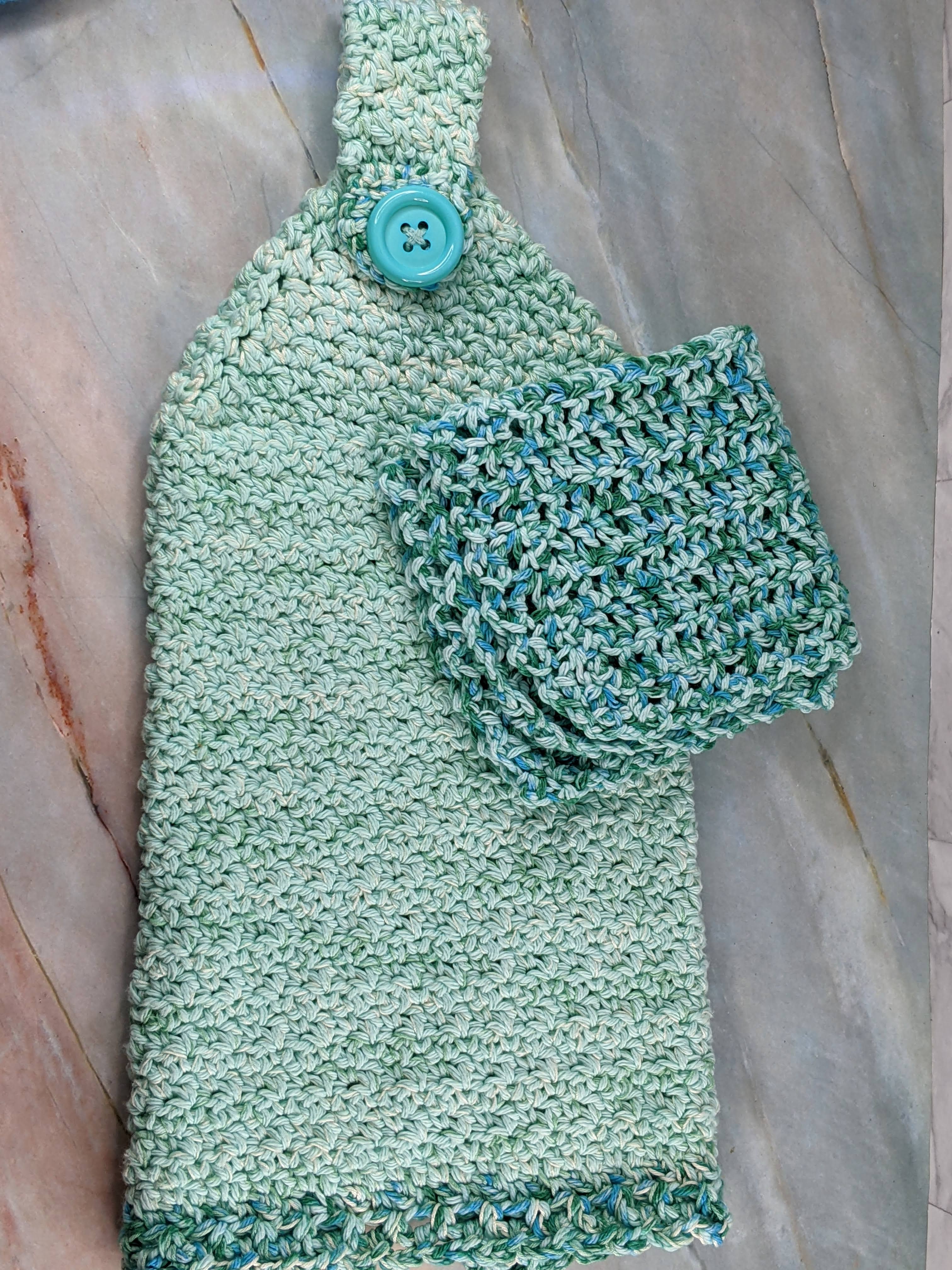 Hand Towel with Crochet Dishcloth