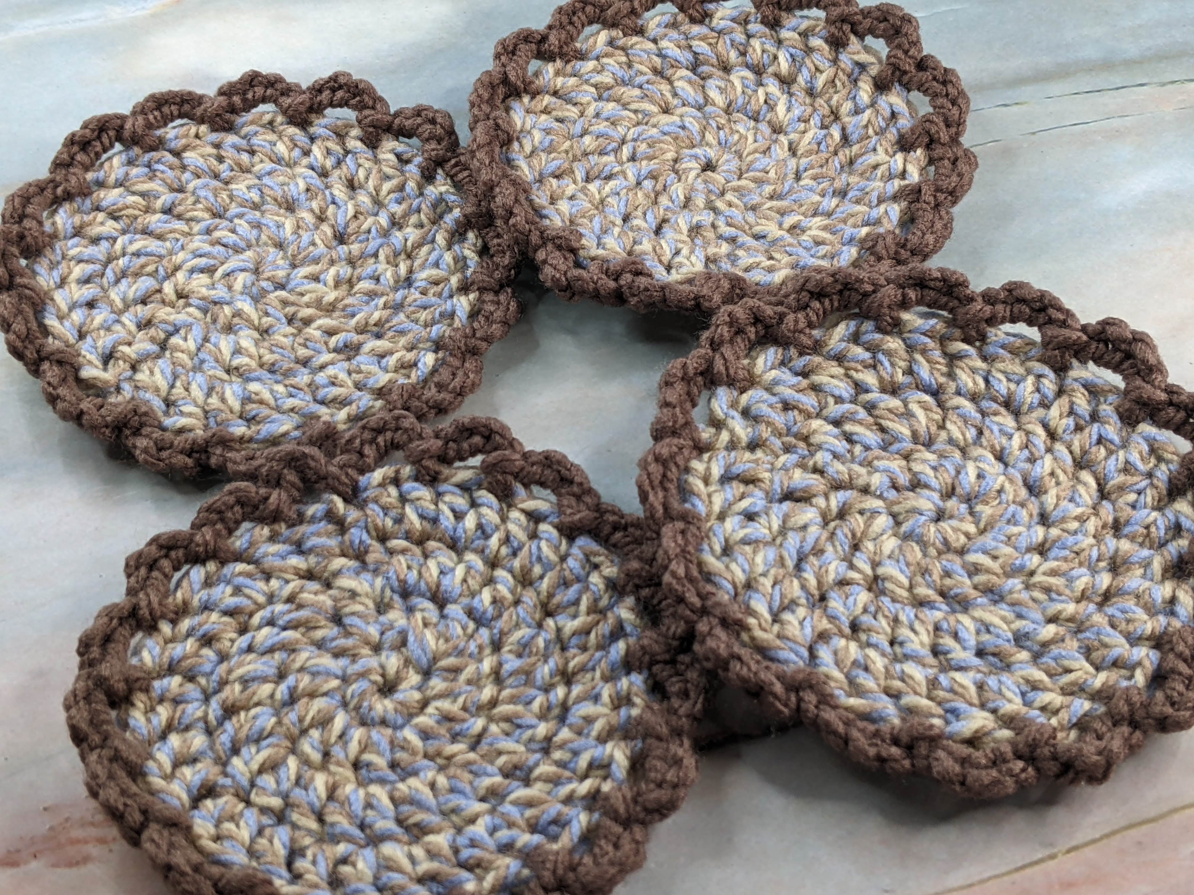 4 Brown Crocheted Coasters with Twist Edge