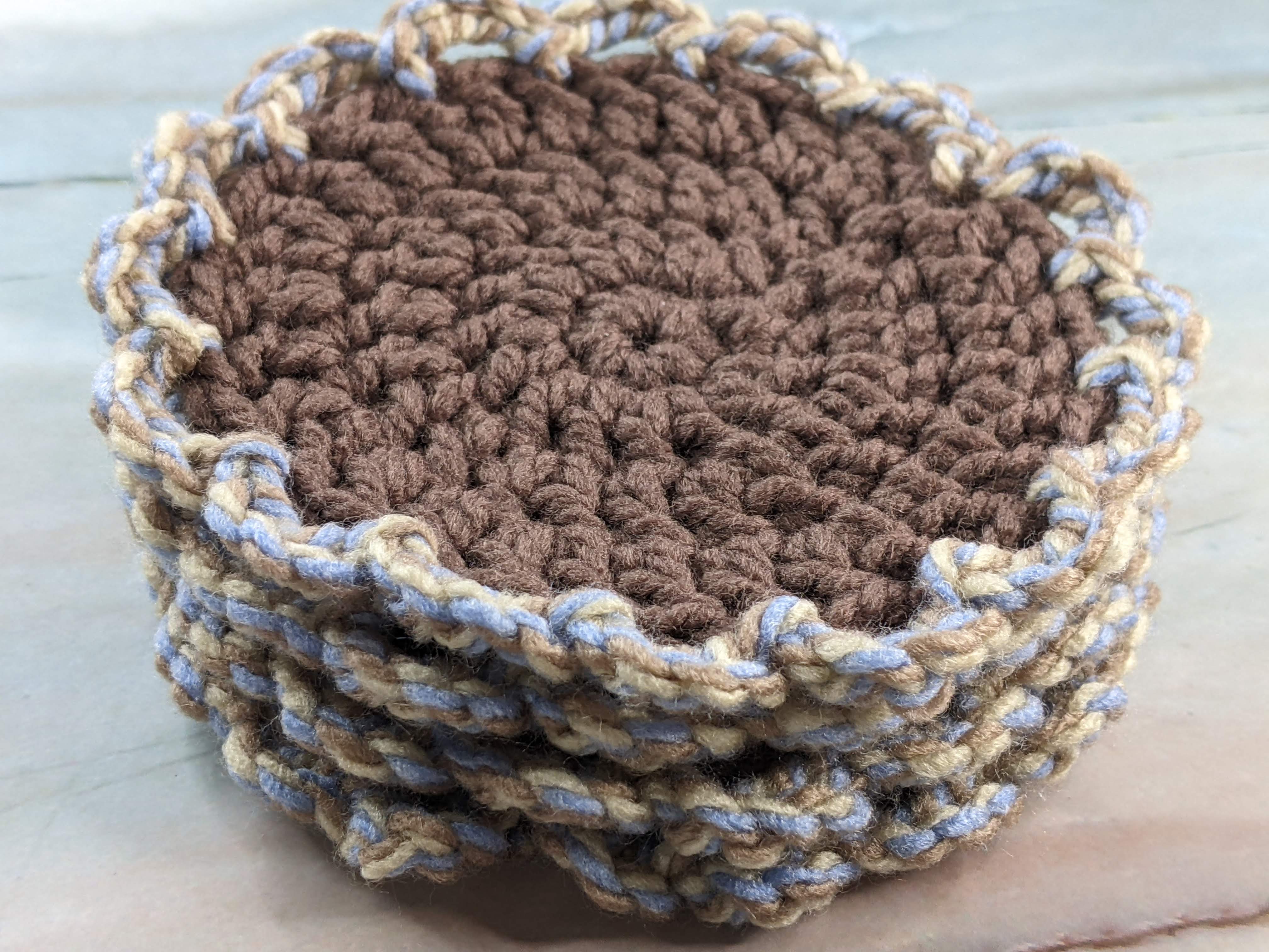 4 Twist Crocheted Coasters with Brown Edge