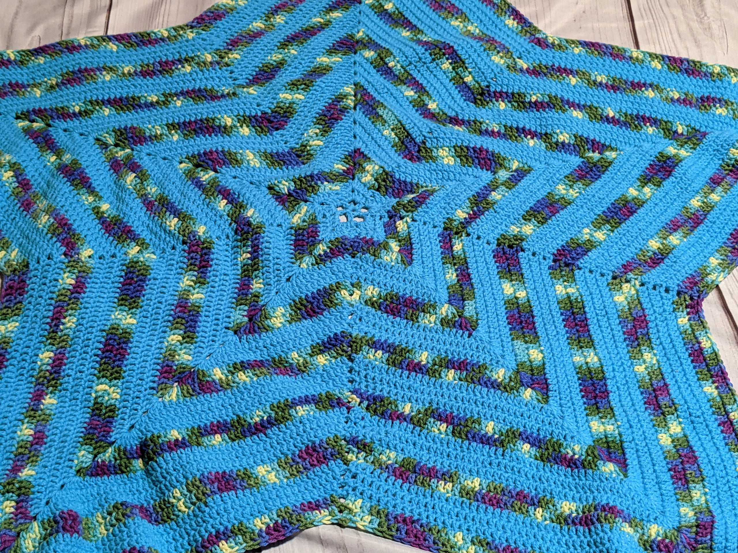 Aqua/Purple Crochet Star Afghan