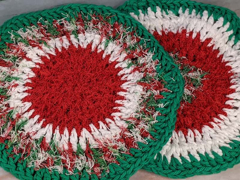 2 Round Christmas Crochet Dishcloths