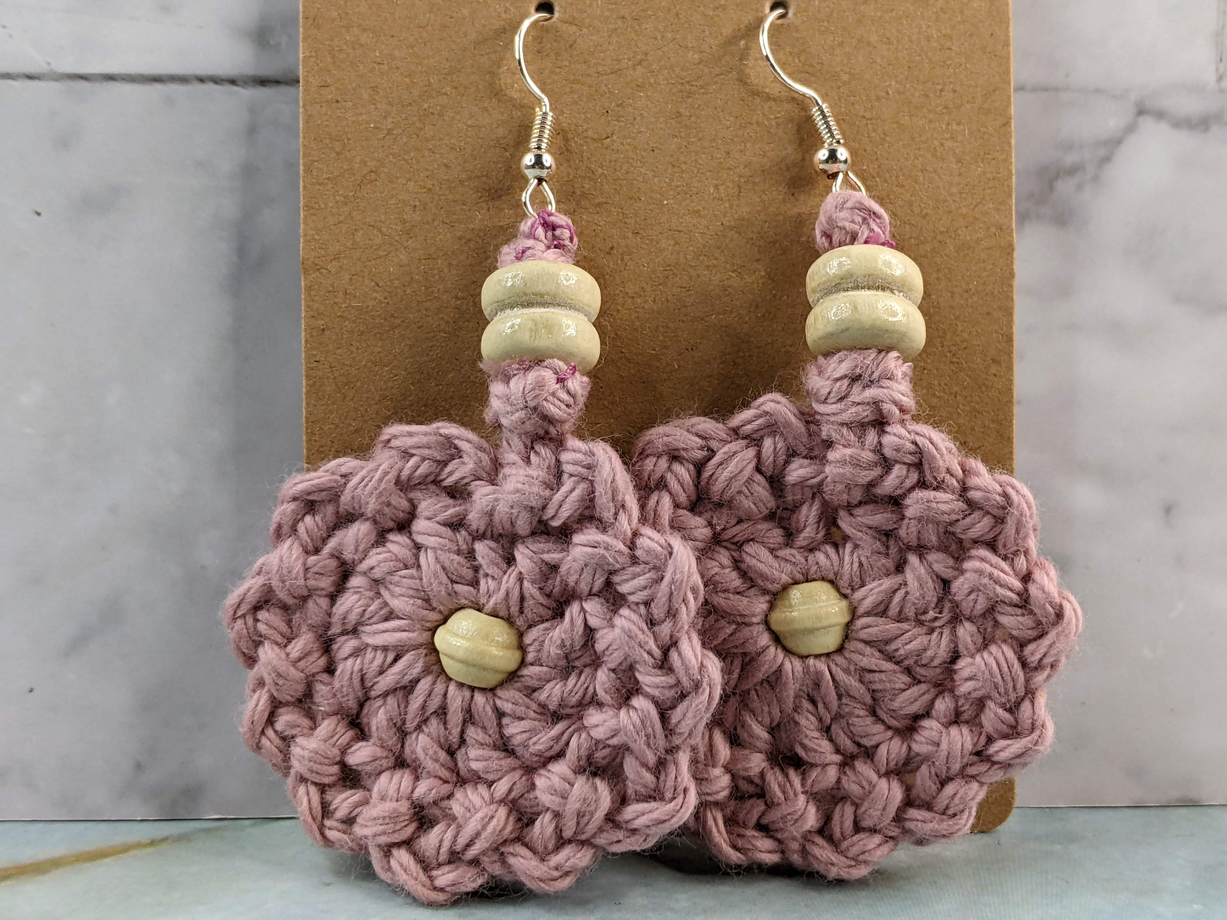 Rosy Crocheted Flower Earrings