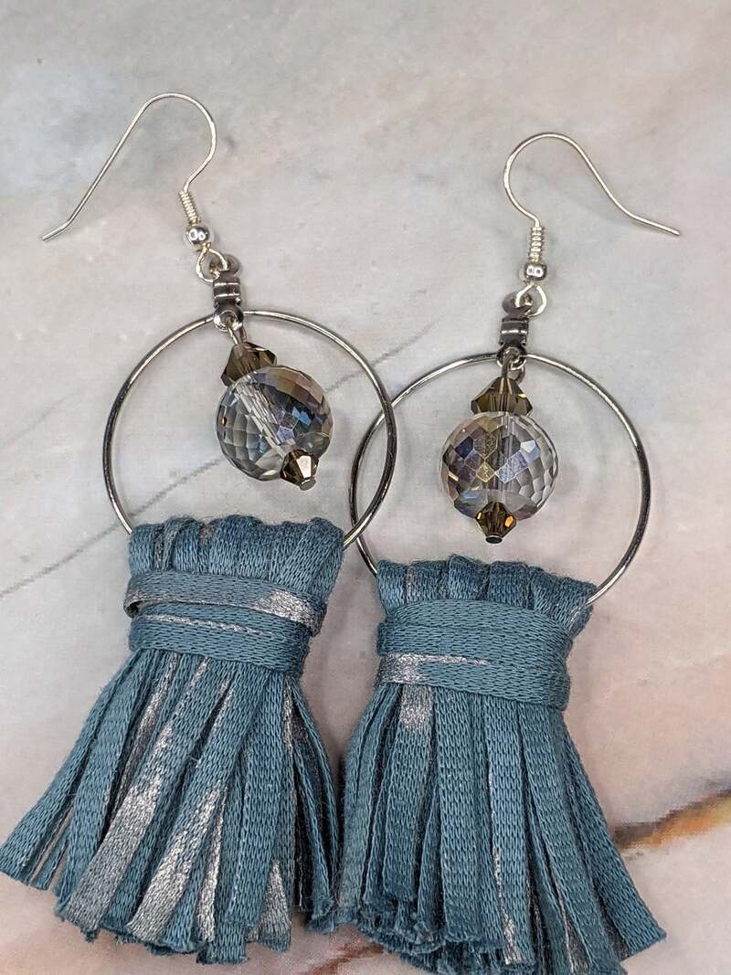 Denim Earrings with Silver Beads